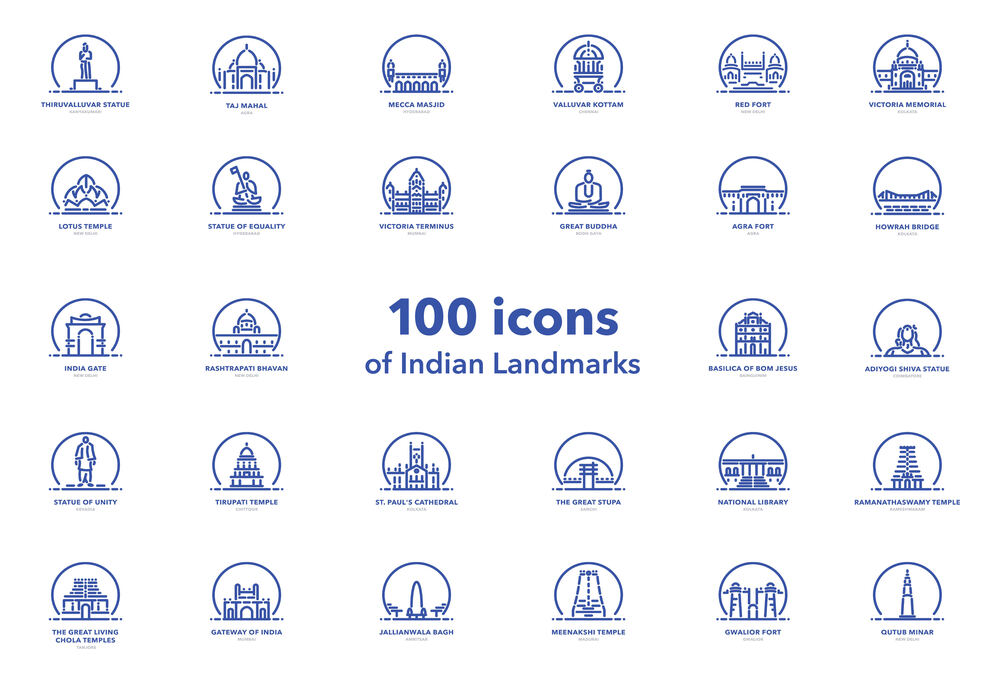 You can find a line-style vector icon for each of the landmarks in India listed below.